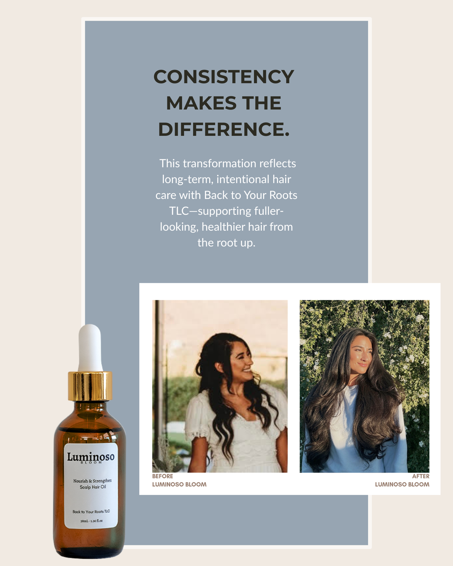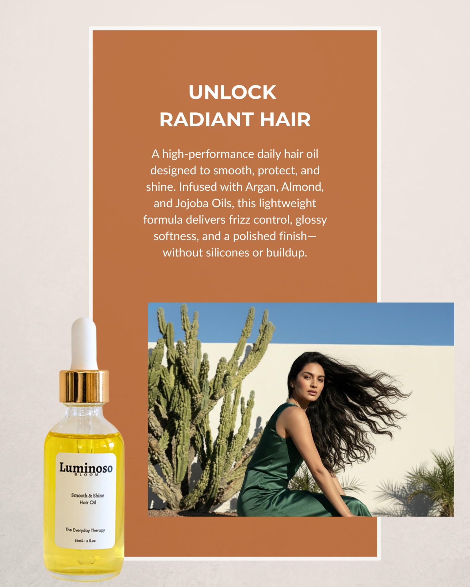 Transform your hair care routine with Luminoso Bloom—where nature meets science. Our plant-based oils are crafted to nourish, strengthen, and restore, helping your hair bloom with health and shine, wherever you are.